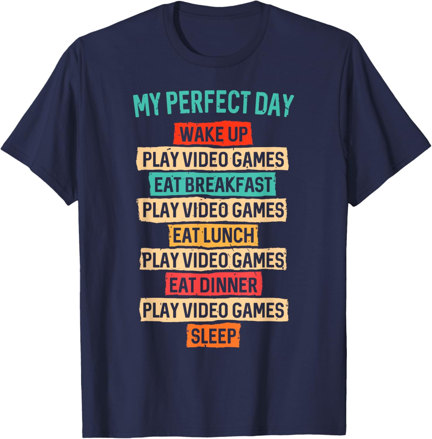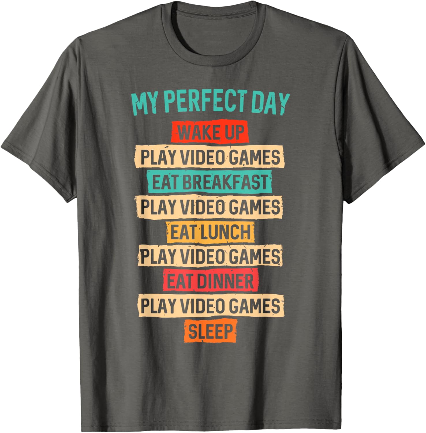 Funny Video Gaming Shirt Teens Boys Men My Perfect Day Gamer T-Shirt