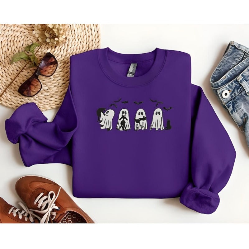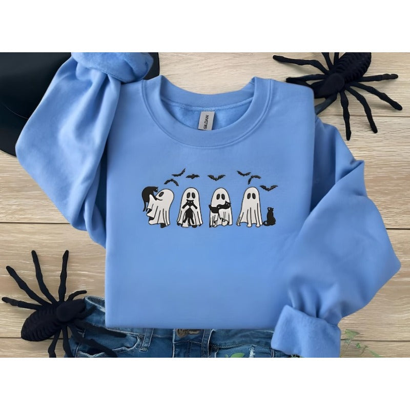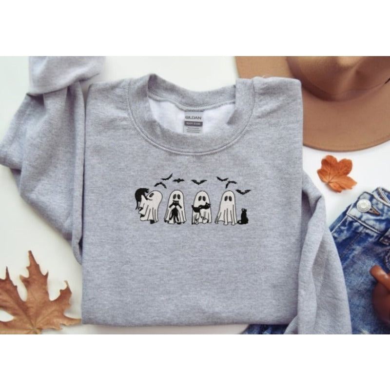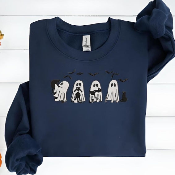 Embrace spooky season in comfort with this Halloween Ghost Black Cat Embroidered Sweatshirt. Crafted with cozy fabric, it features a charming embroidered design that blends eerie and cute vibes effortlessly. Perfect for casual wear, this sweatshirt keeps you warm while adding a playful touch to your seasonal wardrobe.