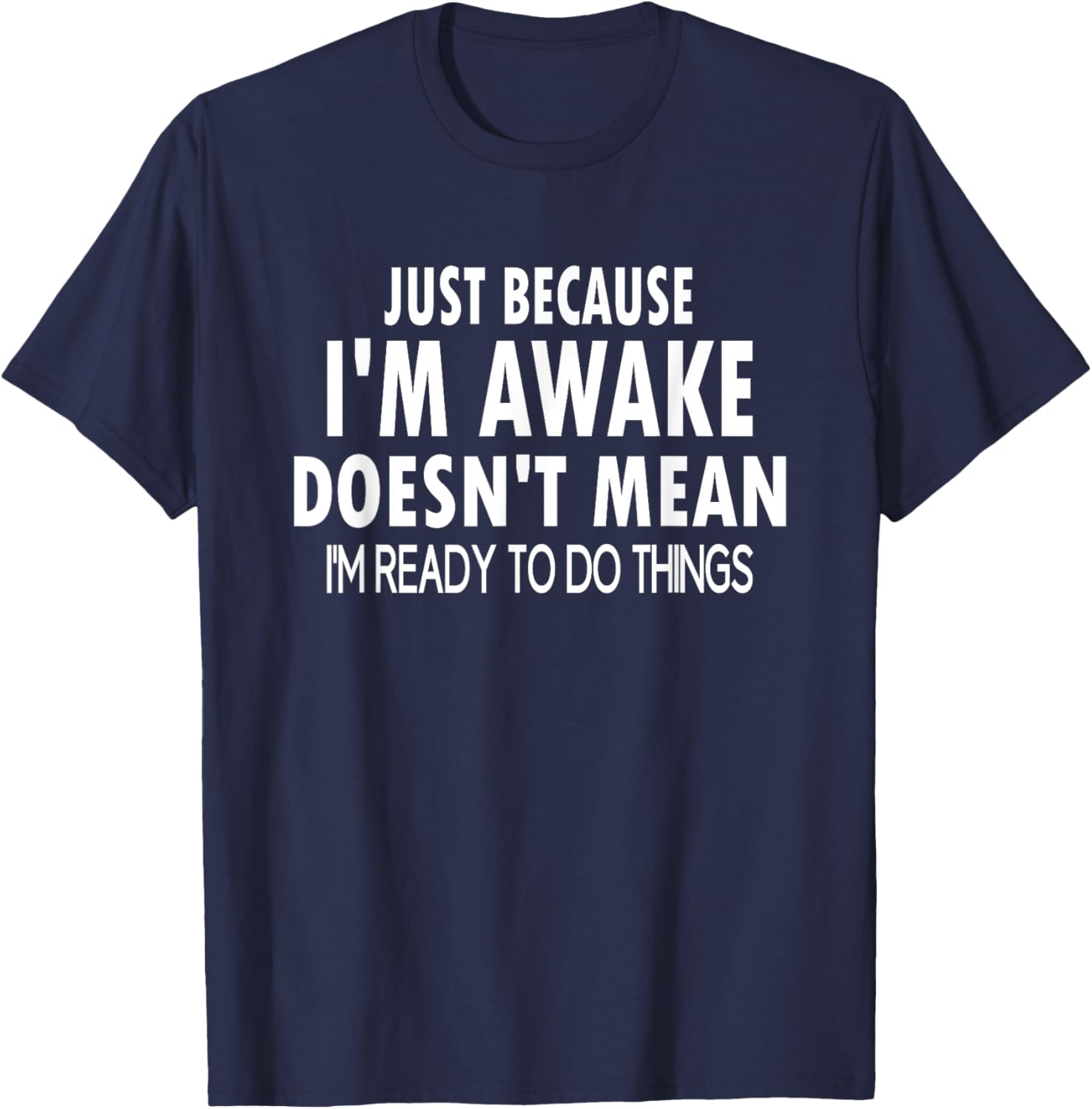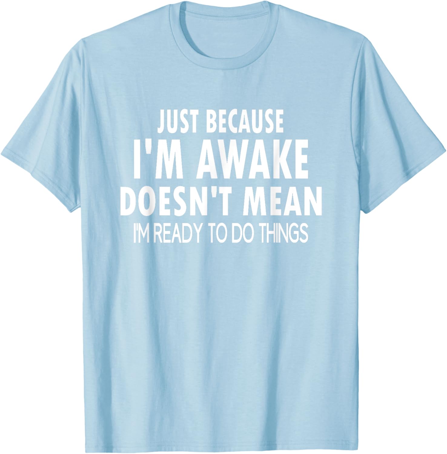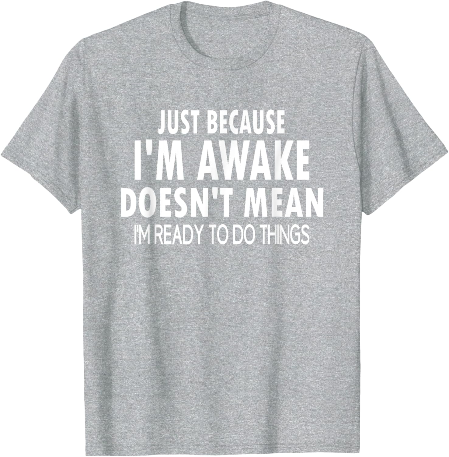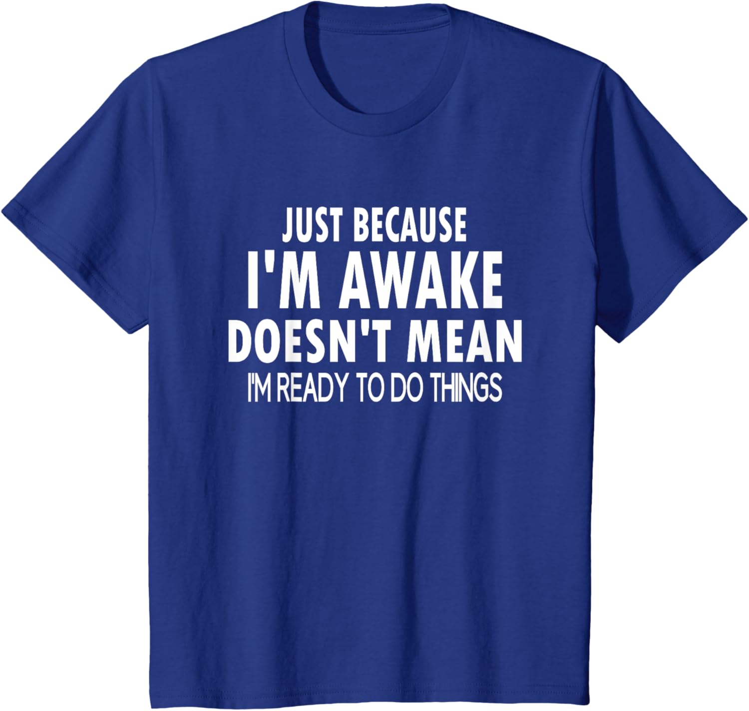 This casual unisex T-shirt features a witty "Just Because I'm Awake" letter design, blending humor with everyday comfort. Crafted for a relaxed fit, it suits all genders and casual occasions, making it an easy choice for your daily wardrobe while expressing your playful side.