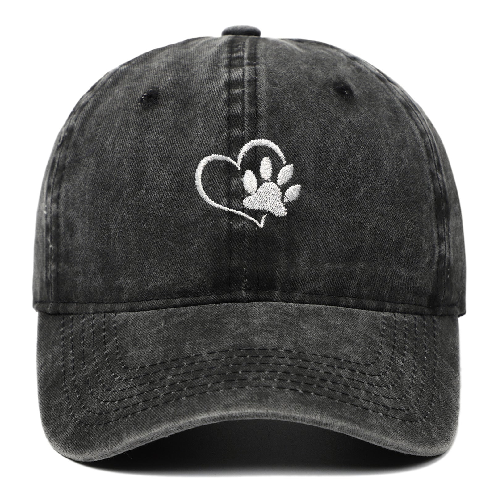 Lovely Dog Paw Washed Embroidery Baseball Cap