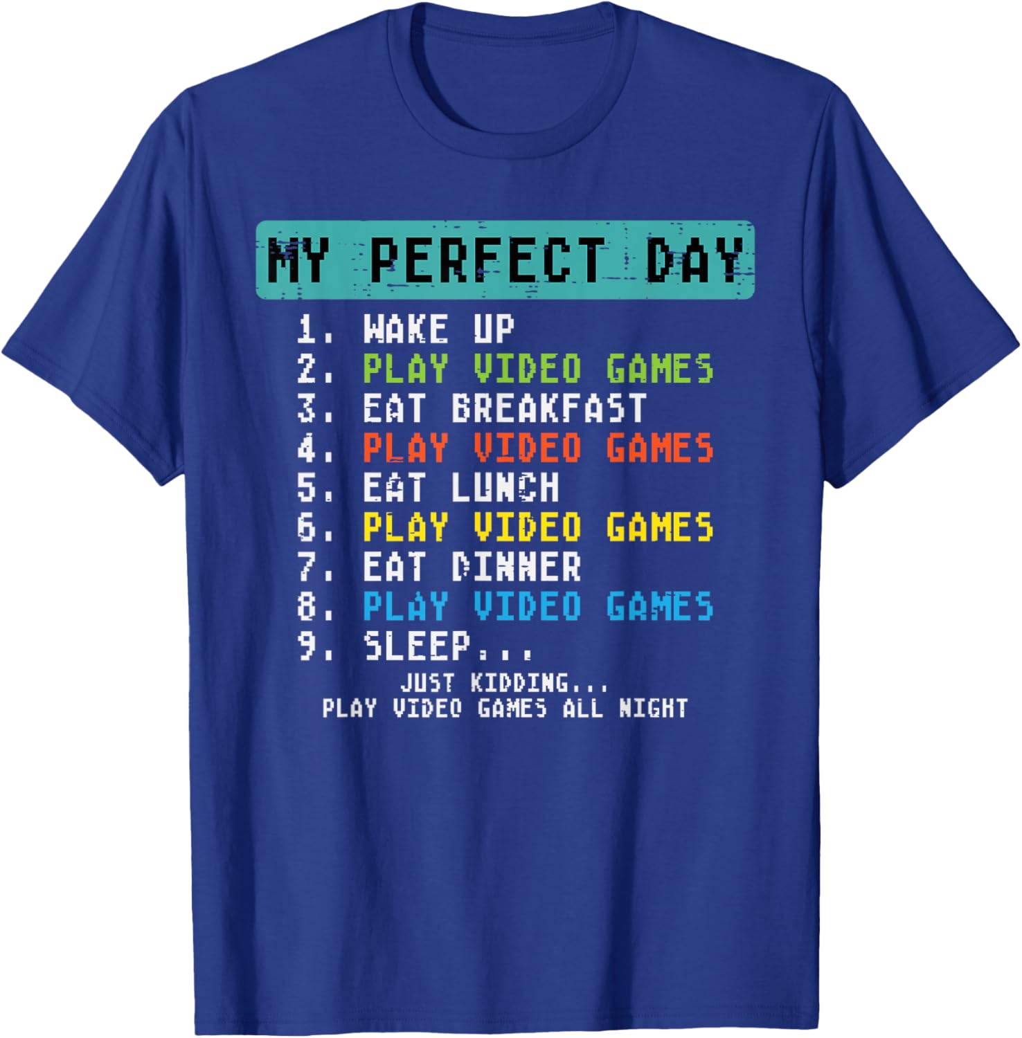 Grab this funny My Perfect Day Play Video Games T-Shirt for your gamer dad, son, boyfriend, husband or brother! It's a perfect gaming gift idea & present for Birthday, Father's Day, Mother's Day or Christmas.