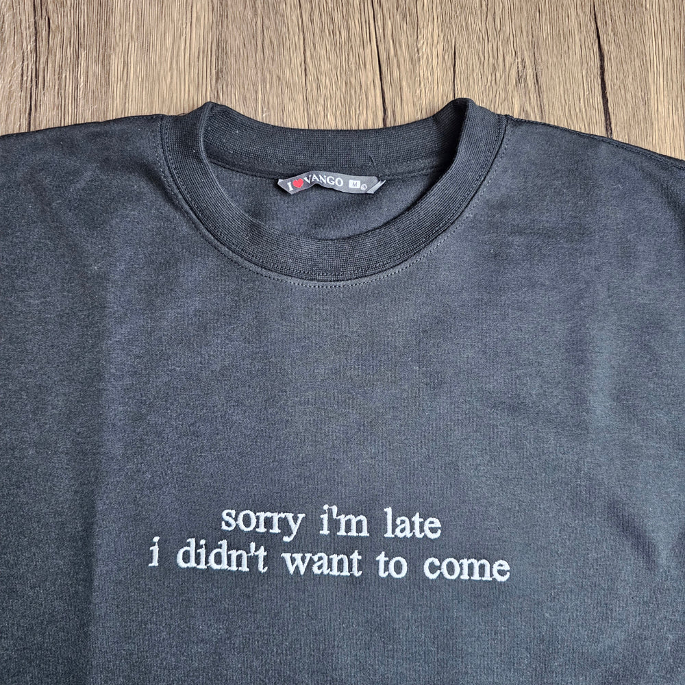 Sorry I'm Late I Didn't Want To Come Embroidered Introvert Sweatshirt