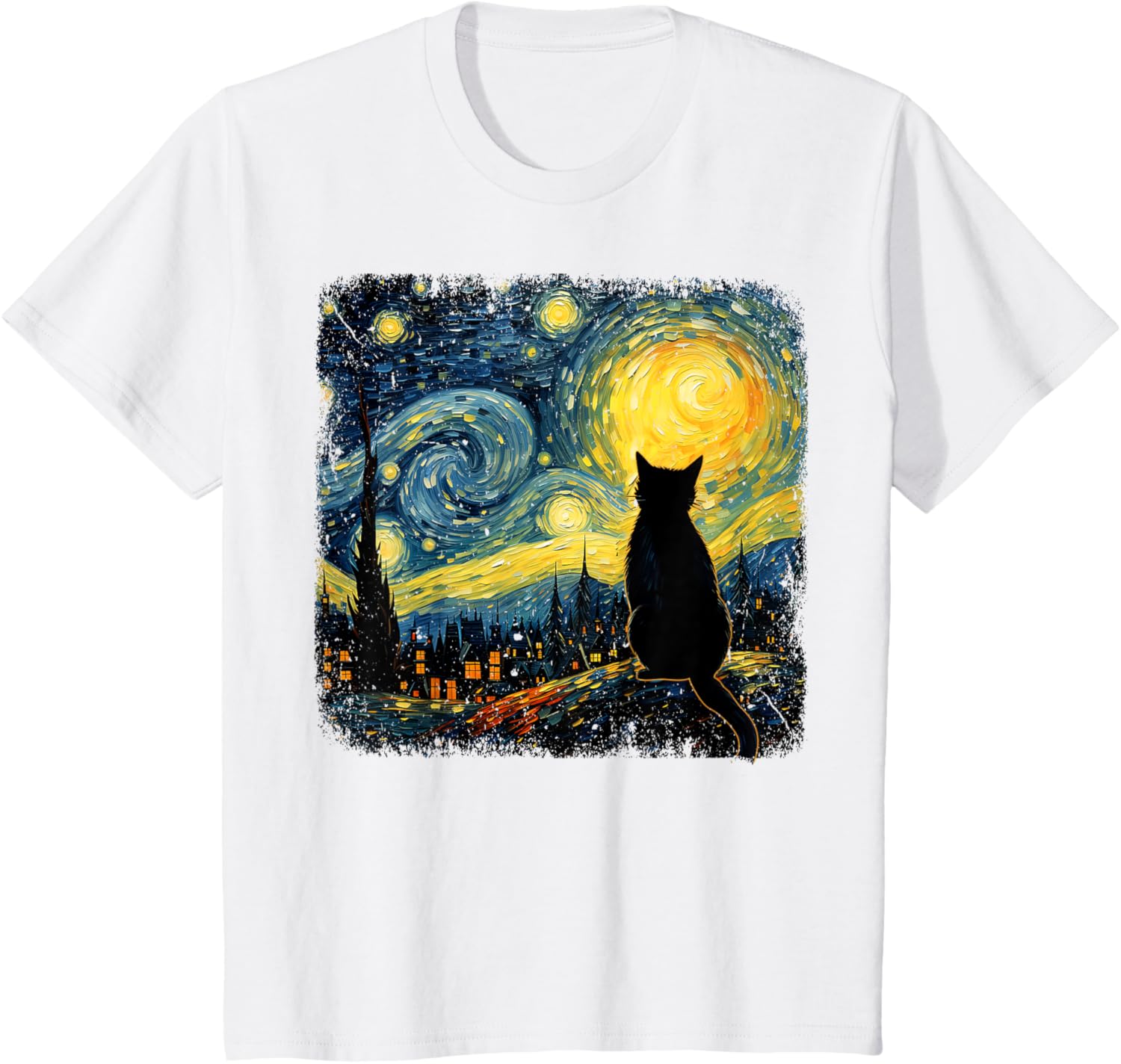 This Starry Night Van Gogh Cat Printed T-Shirt blends iconic art with playful charm, featuring a creative fusion of Van Gogh's famous painting and a whimsical cat design. Crafted for comfort and everyday wear, it adds a touch of casual sophistication to your wardrobe, perfect for art lovers who appreciate a fun, relaxed style.