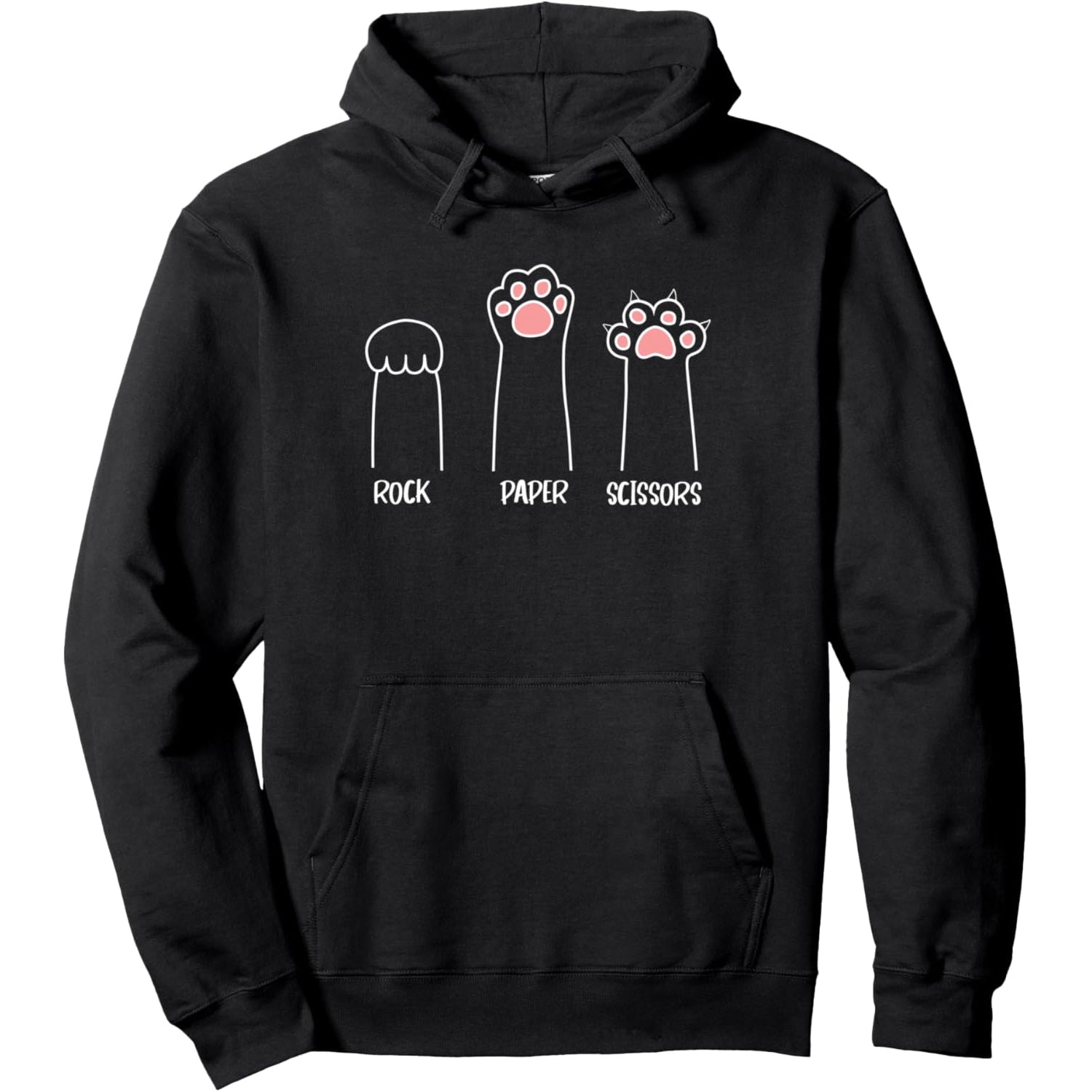 Unisex Rock Paper Scissors Hand Game Cute Paw Funny Cat Pullover Hoodie
