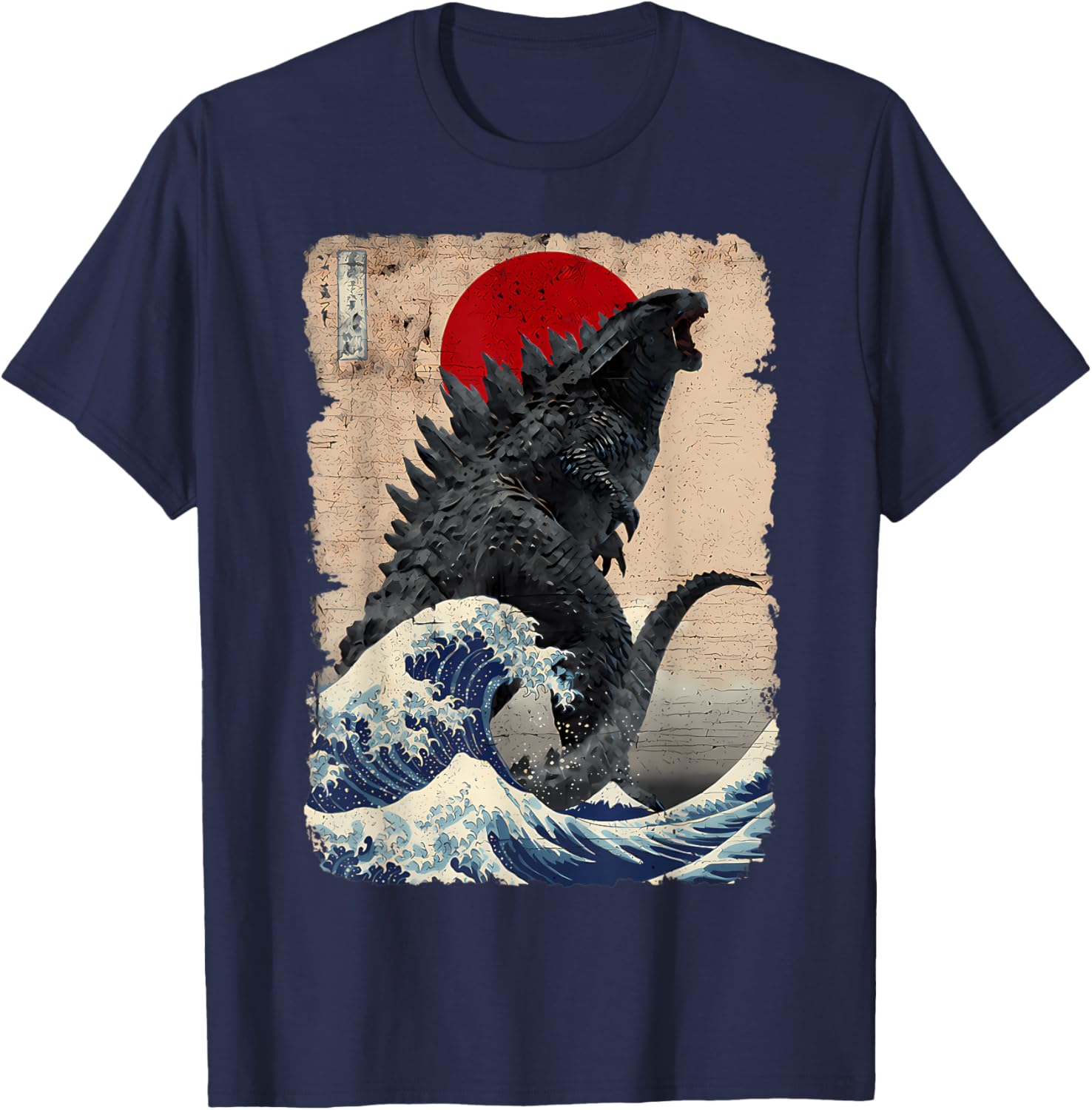 Introducing the vintage Japanese giant monster Great Wave T-Shirt- a must-have for fans of this iconic monster!